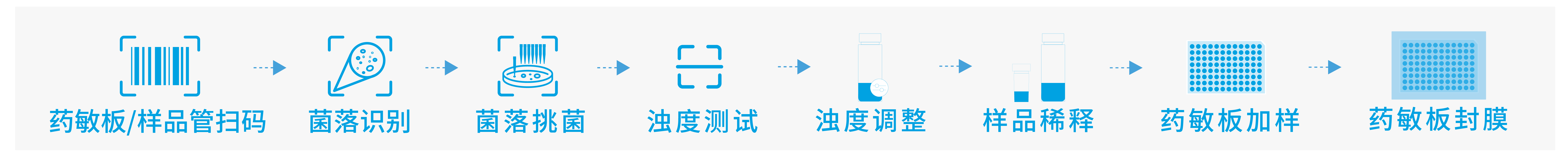结核杆菌(结核分枝杆菌)是引起结核病的病原体,主要通过呼吸道传播,具有很强的感染性。耐药结核的出现增加了治疗难度,需严格遵循治疗方案。该自动化系统在二级生物安全柜内,通过协作机器人整合挑菌仪、磨菌比浊仪、加样仪、封膜仪,实现了结核菌耐药测试的前处理自动化。
