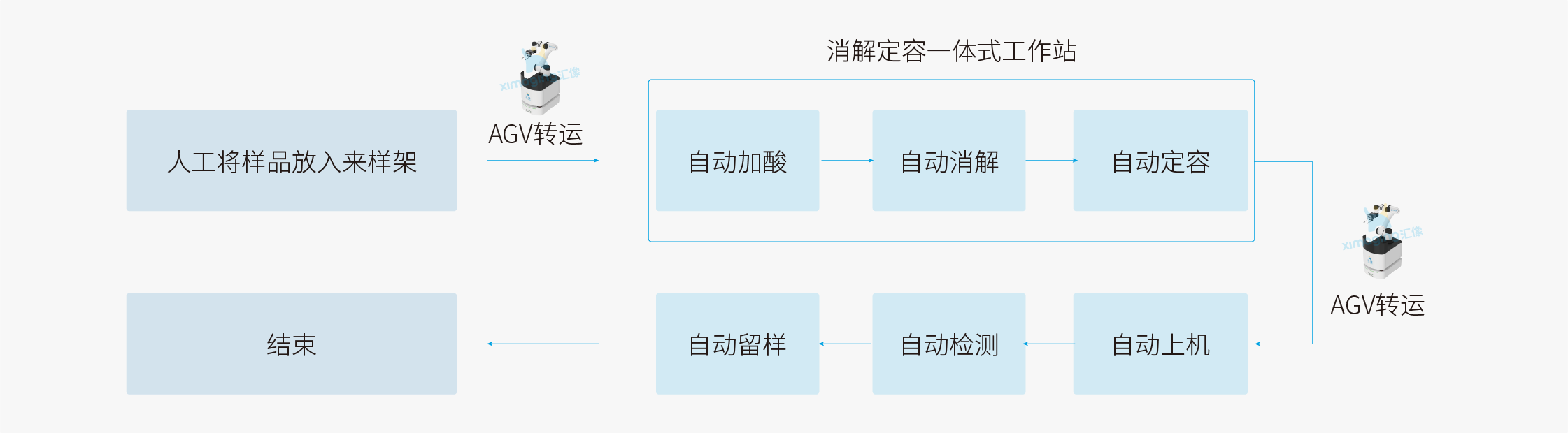 汇像科技智能质谱检测全流程系统打破传统前处理局限!实现样品消解、移液、定容、混匀等前处理步骤,并自动进行ICP-MS检测分析,大幅提高实验效率、准确性和可靠性,减少人为误差与污染风险。