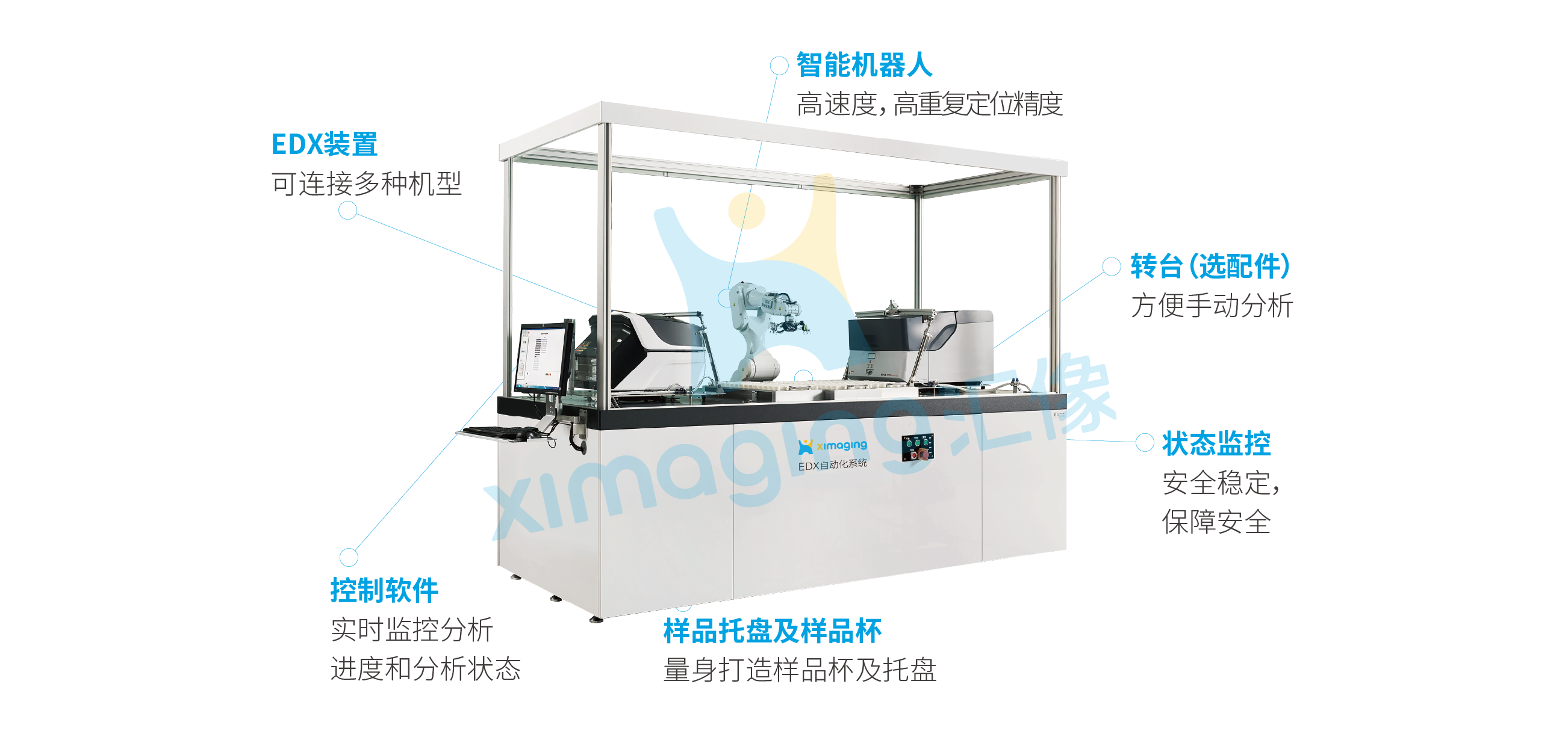 7*24全时段检测能力,实现24小时完全的无人化实验操作以机械臂为媒介,通过对X射线荧光光谱分析仪(XRF)的自动化控制,提供了一个全面的自动化检测平台。
